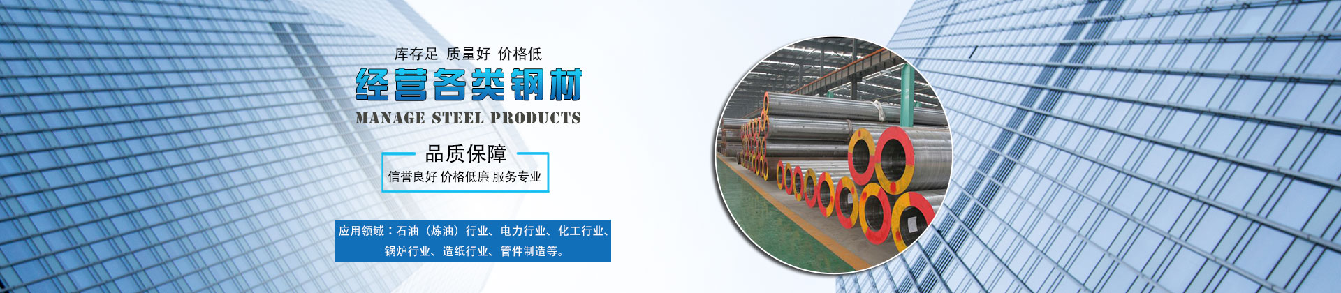 無錫市冶建金屬材料有限公司主要經營各種進口、國產合金鋼、不銹鋼、碳鋼管材、板材、棒材、型材、管道配件和焊接材料,無縫管、直縫管、合金/高壓鍋爐專用管道等產品,并先后成為包頭、冶鋼、天津鋼廠的指定銷售代理商。被中石化、中石油總公司命名為"中國石化石油鋼管配送中心"